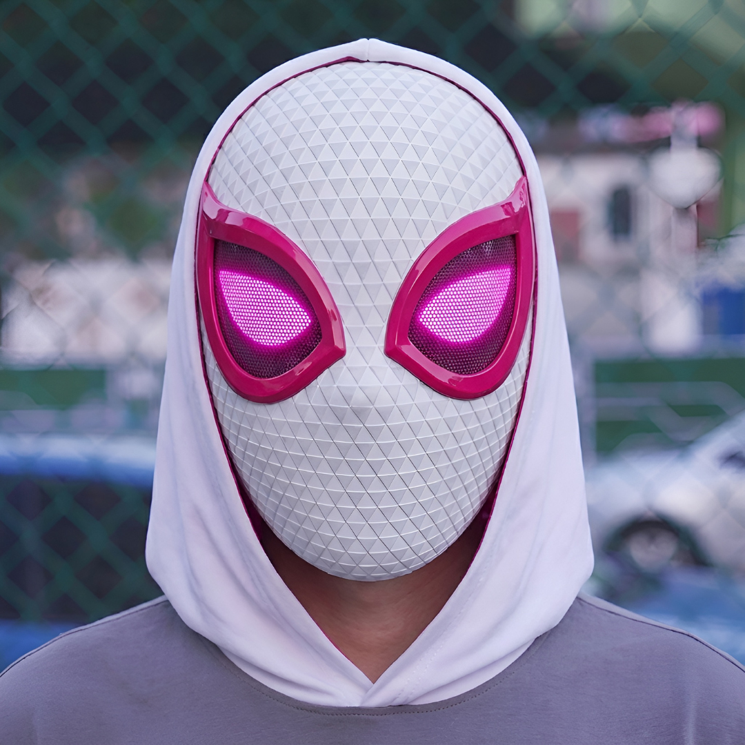 The S GWEN changes everything! With blinking eyes controlled by a Bluetooth ring remote, fully USB-rechargeable for hours of play, built from premium hard-shell material, every mask arrives in a collector’s display box to complete the ultimate cosplay experience.